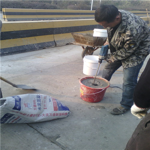 大慶萬通新源科技有限公司獨有的混凝土路面高強速補料,是水泥混凝土路面病害修復的好材料。疲勞、凍融循環(huán)、彎曲壓力、滲水和基層破壞等原因都會引起水泥路面的破損,從而帶來高昂的維護費用。與以往的剛性修補方法不同,混凝土水泥路面維修速補膠提供了一種獨特的柔性修補產(chǎn)品和技術,高柔性、高抗拉性,可跨伸縮縫施工和高抗壓性使得混凝土快補產(chǎn)品為水泥混凝土路面提供了******性的修補。傳統(tǒng)的剛性修補方案,如環(huán)氧砂漿和快干水泥產(chǎn)品,由于其自身的粘結失效,抗疲勞性低以及與原路面不同的伸縮系數(shù),修補面會在短時間內失效或產(chǎn)生新的裂縫,需要反復修補,有效期短且費用高昂。大慶萬通新源科技有限公司的混凝土水泥路面維修速補膠可以隨原路面一起伸縮,移動,從而避免了粘結失效和產(chǎn)生新裂縫。萬通快補產(chǎn)品優(yōu)異的粘結性、柔韌性和高防滑性,特別適用于水泥路面的淺層粘合修補,多邊角混凝土板層修補,跨伸縮縫修補以及路面沉陷修補。萬通混凝土病害修補料針對混凝土起皮起沙、斷板裂縫、蜂窩麻面、坑槽露石子、漏筋掉皮、橋梁的掉皮漏筋快速通車使用時間長。應用萬通快補產(chǎn)品,施工后一天就可以恢復交通。大慶萬通新源科技有限公司的萬通水泥路面維修速補膠適用于高速公路、機場路面、農村村村通路面、廠坪、學校操場、市區(qū)公路、小區(qū)路面、橋梁、水泥路面的修補。使用萬通特快補材料修補路面可以一勞永逸! 水泥地面起砂怎么辦,混凝土修補劑混凝土地面起砂,混凝土地面修補,地面起砂怎么辦,
